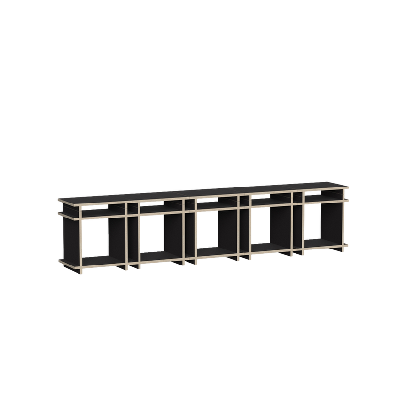 Kệ tivi kích cỡ lớn: Ghép 5 khối thành một hàng ngang dài – đủ để đặt tivi, loa thanh, loa sub, sách báo và đồ trang trí.